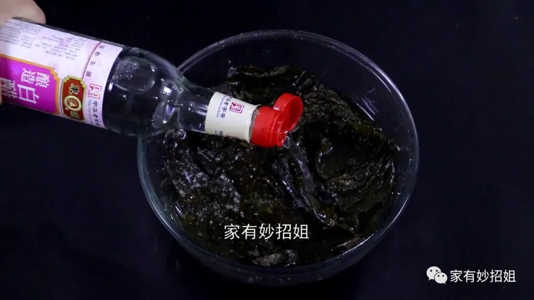 平时我们泡发海带之所以会比较慢,是因为在海带的表面有一层叫做褐藻素的胶质。这种胶质不溶于水,要是我们不将这一层物质破坏掉的话,海带就很难吸水。所以我们在泡发海带的时候,要往水中加入一点白醋。白醋它可以破坏这层胶质,这样就可以使海带快速的泡发了,而且白醋还能去除海带的腥味,我们的白醋可以稍微多倒一点。
