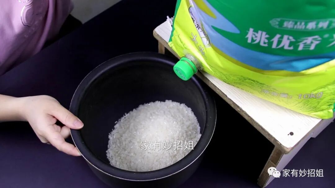 等热熔胶冷却后,我们就可以使用了,每次煮饭的时候只需要把塑料瓶的瓶盖拧开,这样大米就会从瓶口中流出来,等大米的量够了后,我们再把塑料盖拧紧就可以了,用多少倒多少,非常的方便。