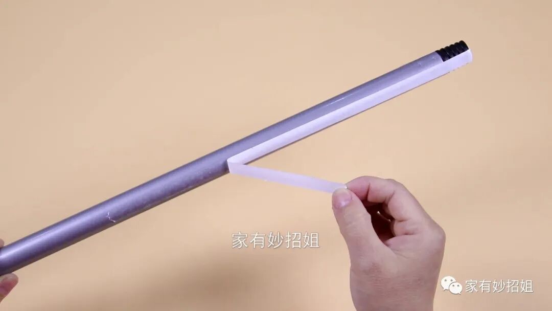 妙用一:制作鸡毛掸子。很多朋友都会在家里配上一个鸡毛掸子,用它来打扫灰尘,非常的方便,而且也不会对家具造成伤害。其实鸡毛掸子不用买,我们用旧毛领就可以改造一个,方法也非常的简单。我们先准备一根棍子,像我们家里用坏的扫把上都是有一根棍子的,我们就可以用上这根棍子,先在棍子上粘好双面胶,棍子的两面都要粘好,而且粘的位置也稍微要长一点。