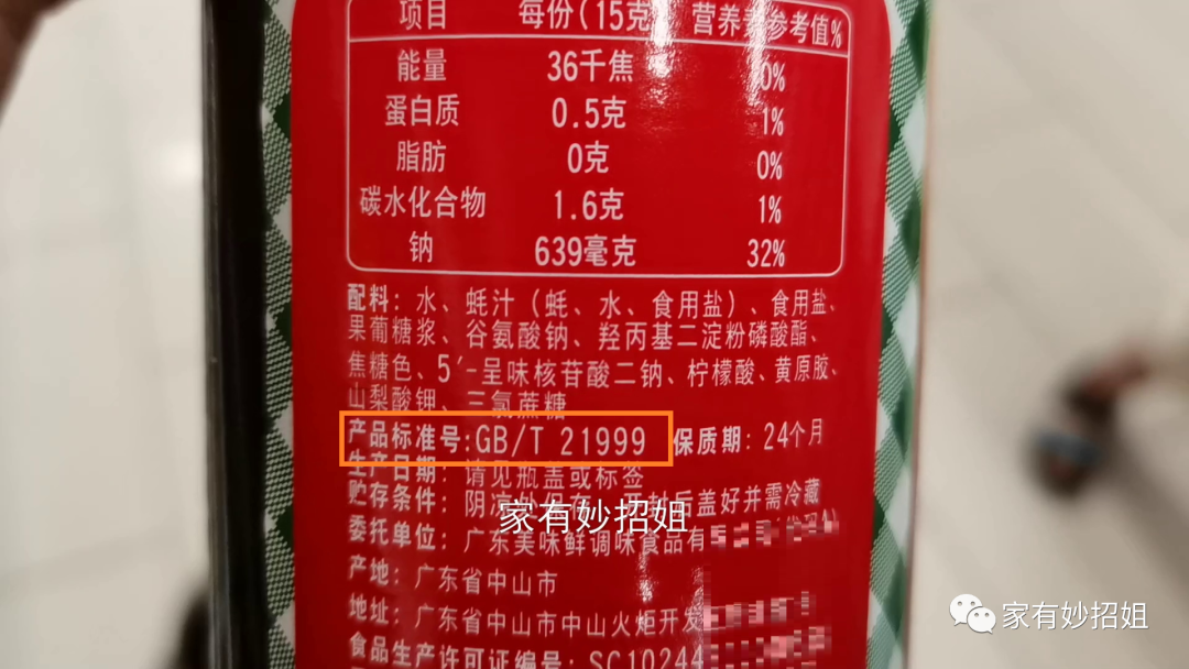 在配料表的下方还有产品标准号,我们购买蚝油时,这一点也是需要查看的。这个产品标准号可以辨别蚝油是否符合国家推荐标准,如果产品标准号是GB开头的,那么这类蚝油就是符合国家标准的。GB也就是国标的缩写,产品标准号是GB开头,它就是属于质量保证的产品,这样的蚝油我们可以放心购买。