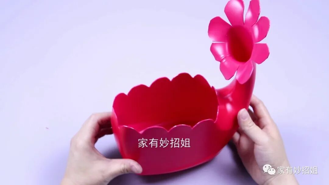 洞全部戳好,这样一个漂亮的花盆就改造完成了。我们只需要在花盆里放上一些营养土,然后再种植上自己喜欢的花草,把它放在阳台既美观又实用。平时要浇水的时候也非常简单,可以直接从把手的孔洞中把水浇进去,非常棒的废物利用,下次家里的空洗衣液瓶别再丢了,简单改造一下还有大作用。如果今天的文章对您有帮助,那就点一个关注,点一个赞,感谢您的支持。