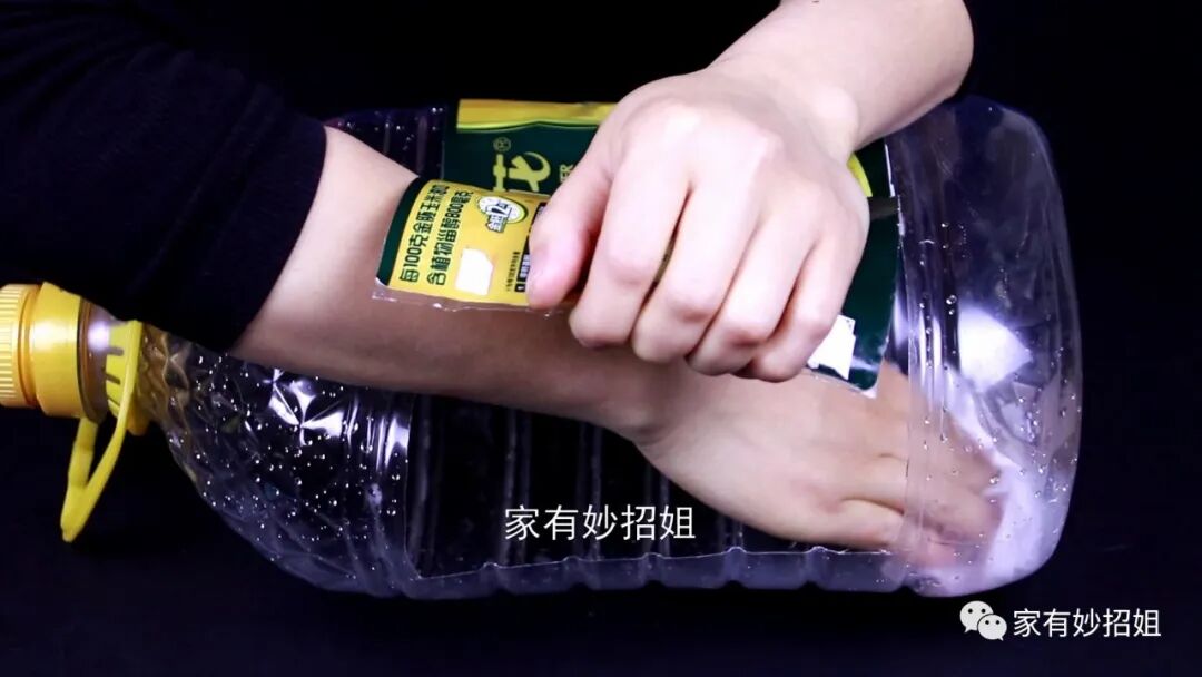 由于油桶是塑料的,我们只要将切割开的地方稍微用力掰一下,就能掰开一个口子,这样我们的手就能伸入到油桶的内部了。要是油桶内部有油脂没有清洁掉,或者里面的水分没有晾干,我们就可以用纸巾擦拭一下,将油桶里面清洁干净。