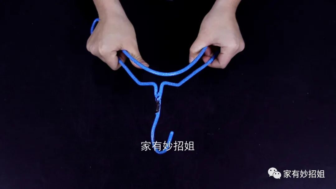 弯折好后,我们再将下方的铁丝往外掰一掰,这样衣架就变成了一个三角形的样子。现在就改造完成了,我们下面来看看是如何使用的吧。