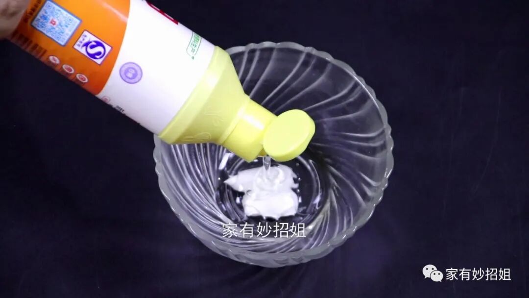 接着我们再往牙膏上挤入洗洁精,洗洁精比牙膏稍微多一点就可以了。