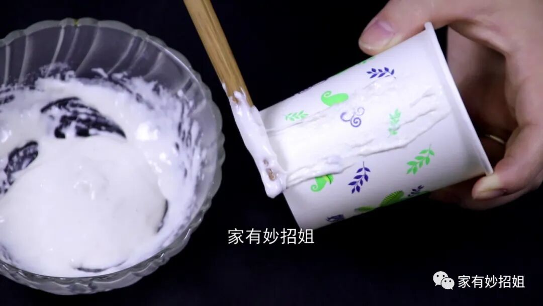我们就这样一直搅拌,一直搅拌到这种拉丝的状态,那么我们的胶水就制作好了,方法非常的简单快速。