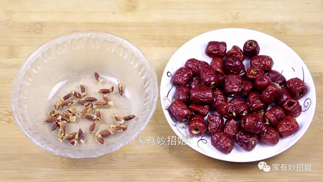 枣核全部都掉落在下面的碗里,而且枣核上面只是残留了一丁点的果肉,这样就不会造成浪费了。但是如果我们的红枣买回家比较干的话,我们需要提前将它浸泡一下,把红枣稍微泡软一点,再来给红枣去核就会更容易些。