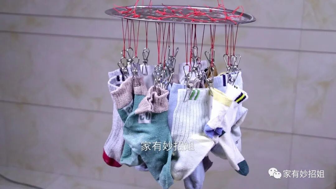 蒸屉上悬挂的夹子,我们可以用它来晾晒袜子,非常的方便,一次性可以晒上很多。在蒸屉的上面,我们还可以放上一些小衣服,晾晒起来也很方便。