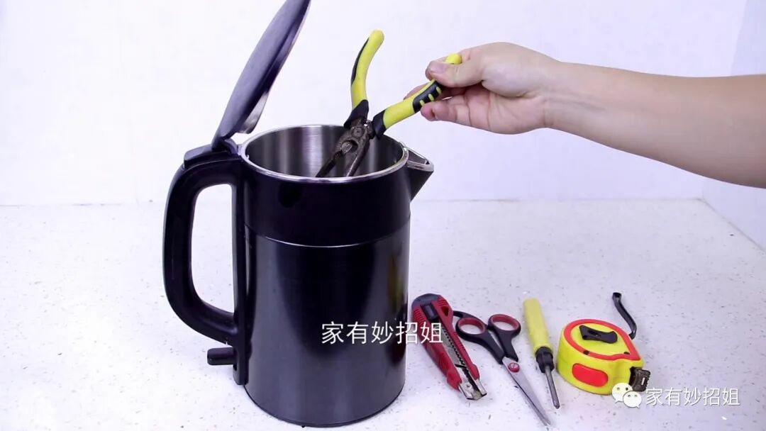妙用一:收纳工具。我们家里都会有各种工具,比如:剪刀、老虎钳、螺丝刀等等。这些工具如果不收纳好,下次要用的时候就要到处找了。而且要是家里有小朋友的话,拿着工具去玩耍,不仅容易伤到自己,而且还可能会将家具破坏掉。其实,我们可以把这些工具收纳在废旧的烧水壶中,然后再将盖子盖好,放在家里稍微高一点的位置,这样小朋友就拿不到了。我们下次要用的时候,拿取也更加的方便,这些工具也不容易丢失。