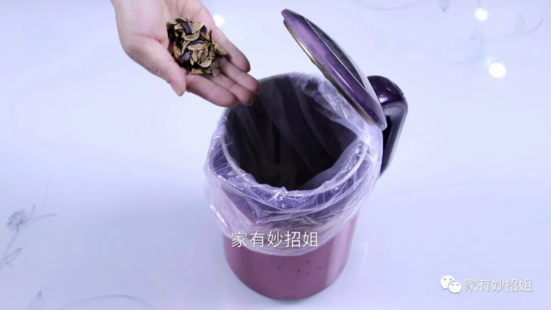 妙用三:充当一个垃圾桶。我们将烧水壶的盖子打开,然后往烧水壶里面套上一个小袋子,这样就可以把烧水壶充当一个垃圾桶来使用了。我们把它放在桌面上或者床头柜上,像我们平时吃的一些零食之类的,就会剩下很多的垃圾,都可以扔在里面。这个烧水壶还有个盖子,我们用完再将盖子盖上,还能避免里面的异味散发出来。