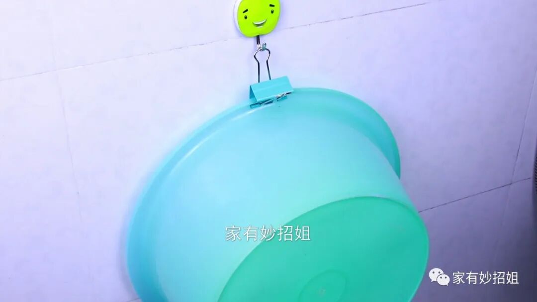 相信很多朋友家里都会有着很多的塑料盆:洗脸的,洗脚的,拖地的等等。这些盆大家是如何放置的呢?如果直接把它放在地面的话,就非常的占位置了,可能一些朋友也会专门买一个架子来放置各种盆,但一个架子也要花上几十元钱。其实想要将盆收纳整齐又不占地方的话,我们就可以利用上一个大号的长尾夹,只需要在大的塑料盆边缘夹一个长尾夹,然后在卫生间的墙壁粘上一个挂钩,接着只需要把塑料盆旁边的燕尾夹挂在挂钩上就可以了。