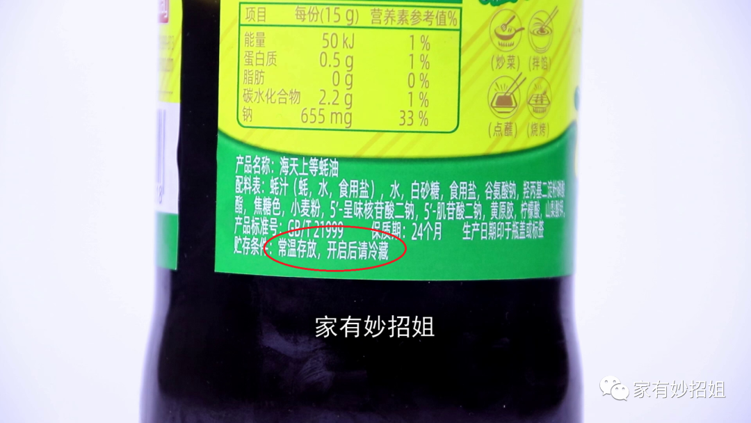 之前我每次用完蚝油后,都是放在厨房的灶台上的,可是没几天,蚝油都还没用完,就发现蚝油长毛了,它竟然发霉了。后来我才知道蚝油开启后是需要冷藏保存的,在蚝油的瓶身上也有提示,之前我一直都没有注意到。相信不少人和我一样都没有注意这一点,下次我们的蚝油用完记得要放进冰箱冷藏保存。要是发现蚝油变质了,我们就不要再食用了,以免对我们的身体造成伤害。
