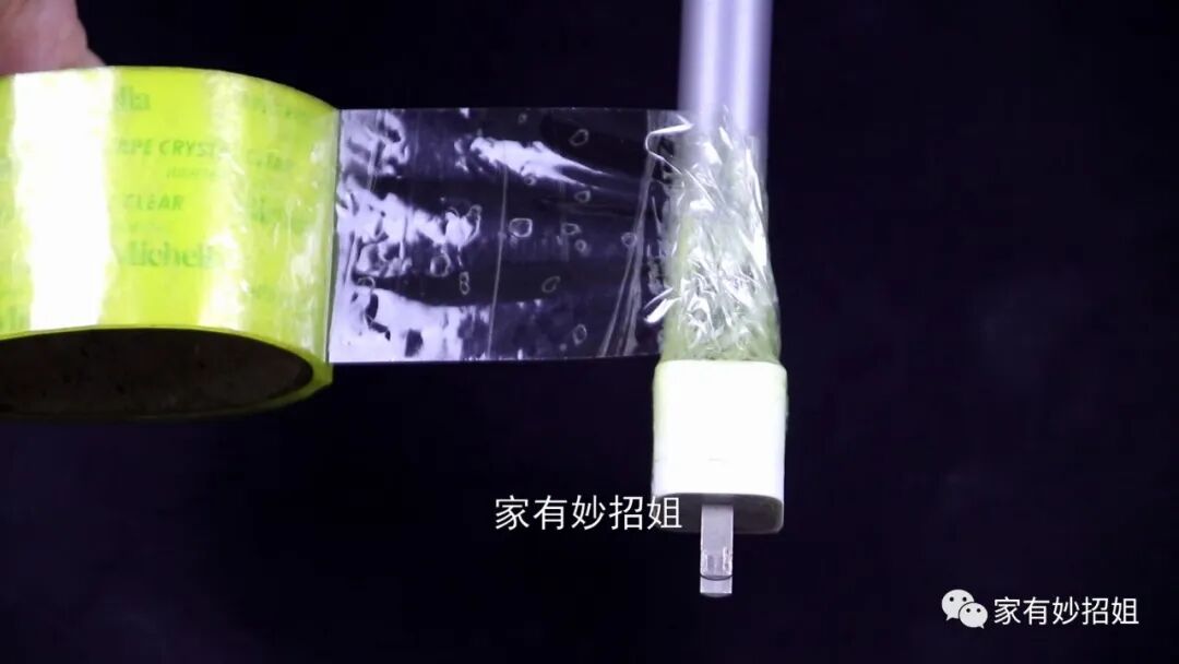平常晾晒衣服,我们都需要用到撑衣架,要是家里的撑衣架坏了,我们就没有办法将高处的衣服撑下来了。但其实,废旧的手机充电头也可以改造成一个撑衣架,方法特别简单,我们只需要找一根棍子,像我们废旧的拖把、扫把上面的棍子都可以。然后再把充电头放置在棍子的顶端,接着用透明胶布把充电头和棍子固定在一起。我们尽量多缠绕一些胶布,把它粘的牢固一些,那么这样一个撑衣架就完成了。
