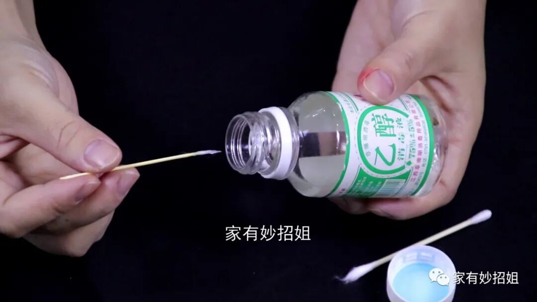 我们再拿来一根干净的棉签,棉签上都是有一些棉花的,我们取下一点棉花。然后再拿一根牙签,把取下来的棉花缠在牙签上,再搓成小条。接着再把这个棉花沾上一点酒精。
