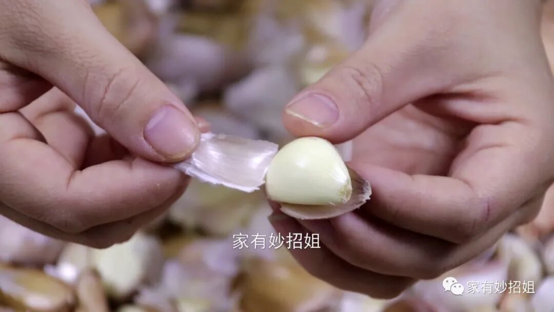 这个时候我们再来剥大蒜就很容易了,只要轻轻一剥,就能将蒜子剥出来,不伤手也很快速。