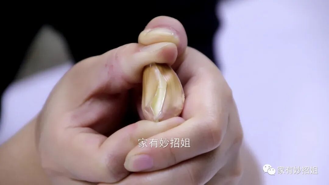 第二种方法:要是我们的大蒜买回家后来不及晾晒,我们可以先拿一小瓣的大蒜,用大拇指和食指捏住大蒜的头尾。然后用力地往中间一捏,这个时候,大蒜皮就会裂开一个小口子。我们再顺着裂开的大蒜皮来剥,也能很轻松地将大蒜剥出来,这样剥好的大蒜非常的完整。