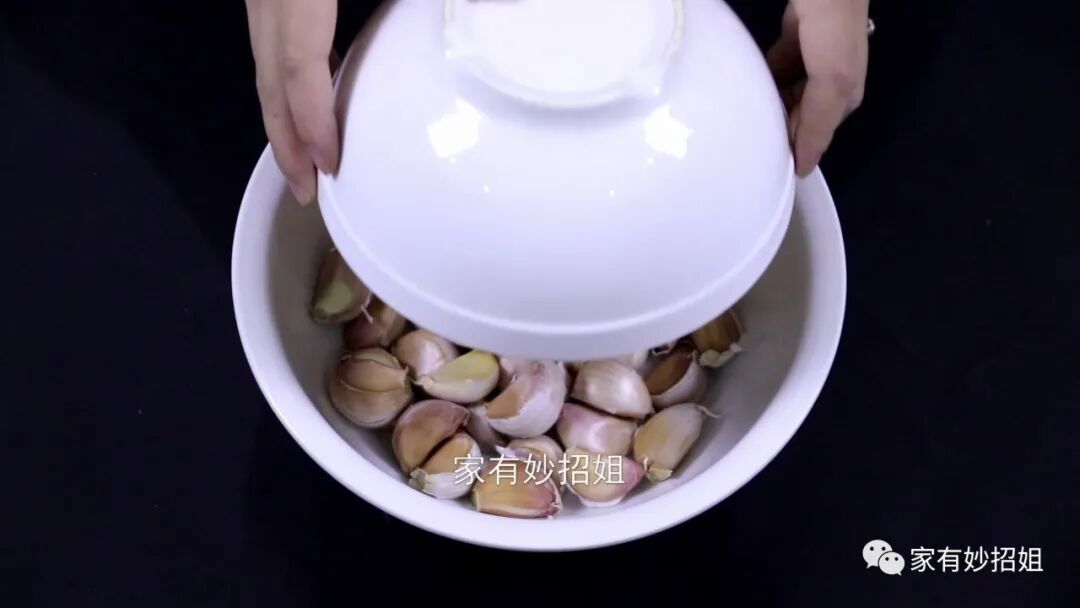 我们还可以把大蒜放在一个大点的碗里,然后在上面倒扣上一个碗。