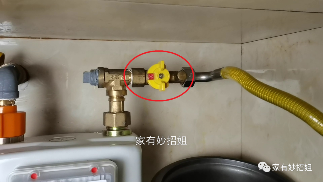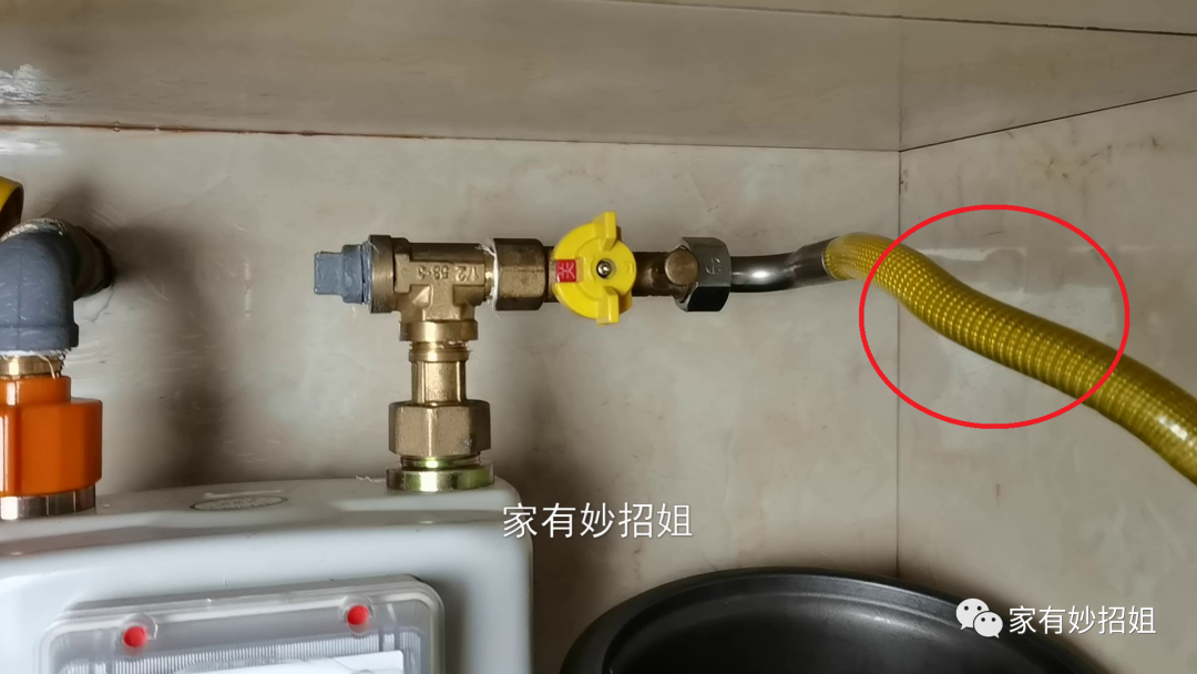 连接软管的还有一个小阀门,也叫灶前阀,这个阀门的话,我们每次使用完燃气的时候,就应该将它关闭。因为连接灶台的软管都是有使用寿命的,当使用的时间一长就会出现老化的问题,而如果我们没有将这个阀门关闭的话,会使软管里一直充斥着燃气,就会加速软管的老化或开裂,从而提高危险性,所以,我们每次使用完后,要记得将这个灶前阀关闭。