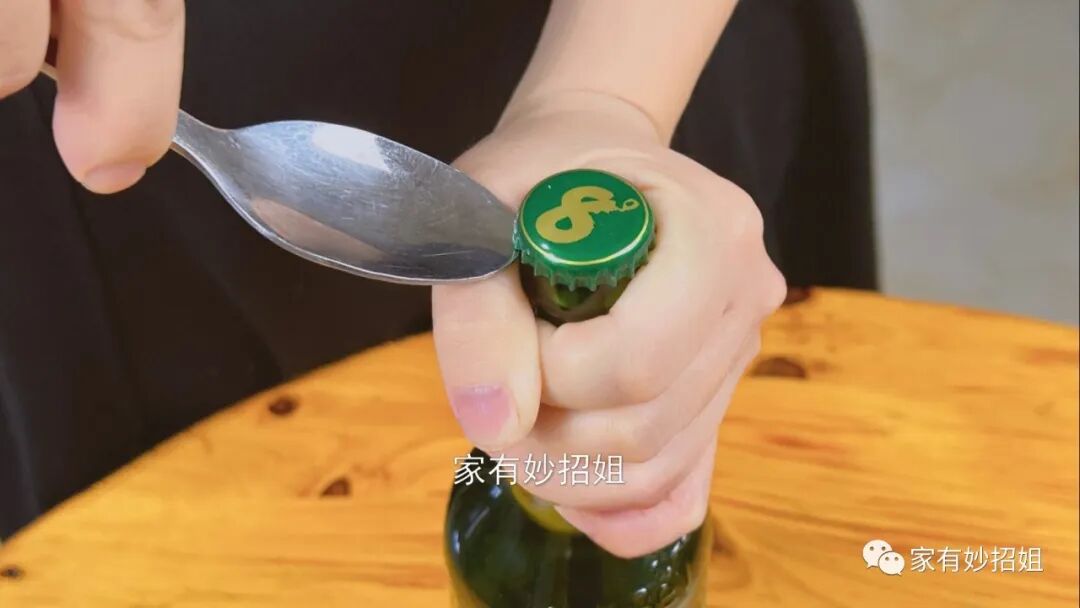 我们吃饭时,餐桌上就会有勺子,其实这个勺子也可以利用来开啤酒瓶盖,不过要选用不锈钢的勺子。方法也很简单,只需要一手抓住瓶盖下方一点的位置,然后另一只手抓住勺子对准瓶盖,并将勺子抵在手上,这样再用力一撬,瓶盖就能被打开了。