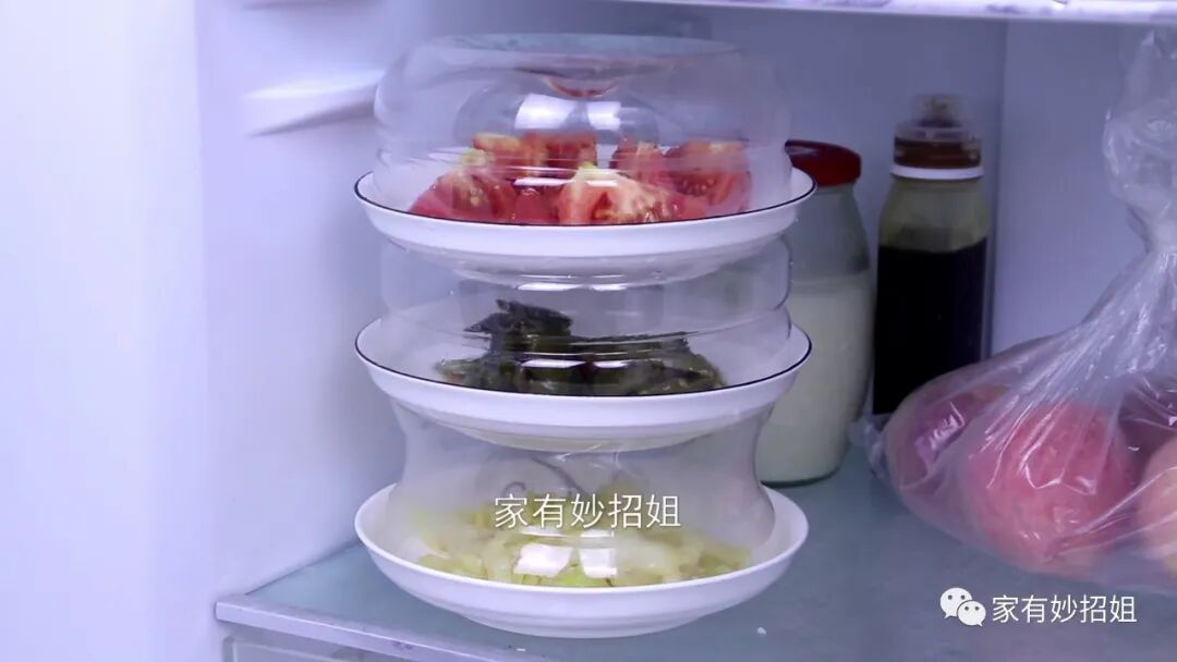 平常家里没有吃完的剩菜剩饭,我们就可以用切割下来的空油桶,一层一层地给它摆放好。这样既可以给饭菜保温,也可以防止蚊虫掉落在上面。我们把它放进冰箱里,一个位置可以放好几盆菜,充分扩大了冰箱的使用空间。