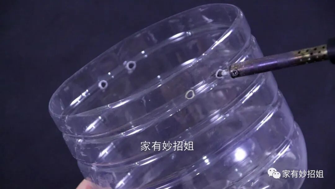 我们先来改造油桶的下半部分,用电烙铁在油桶的两边分别戳上两个洞。