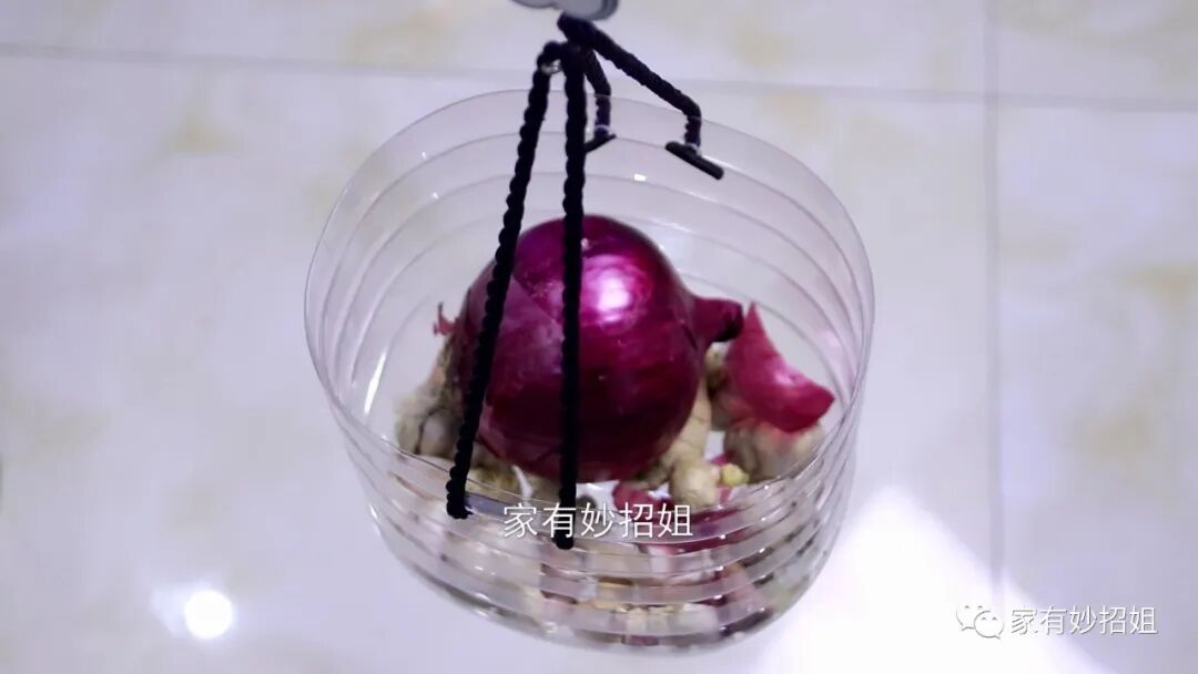 我们可以将它放在厨房里,用来收纳大蒜、生姜之类的,提手可以挂在挂钩上,非常的好用。