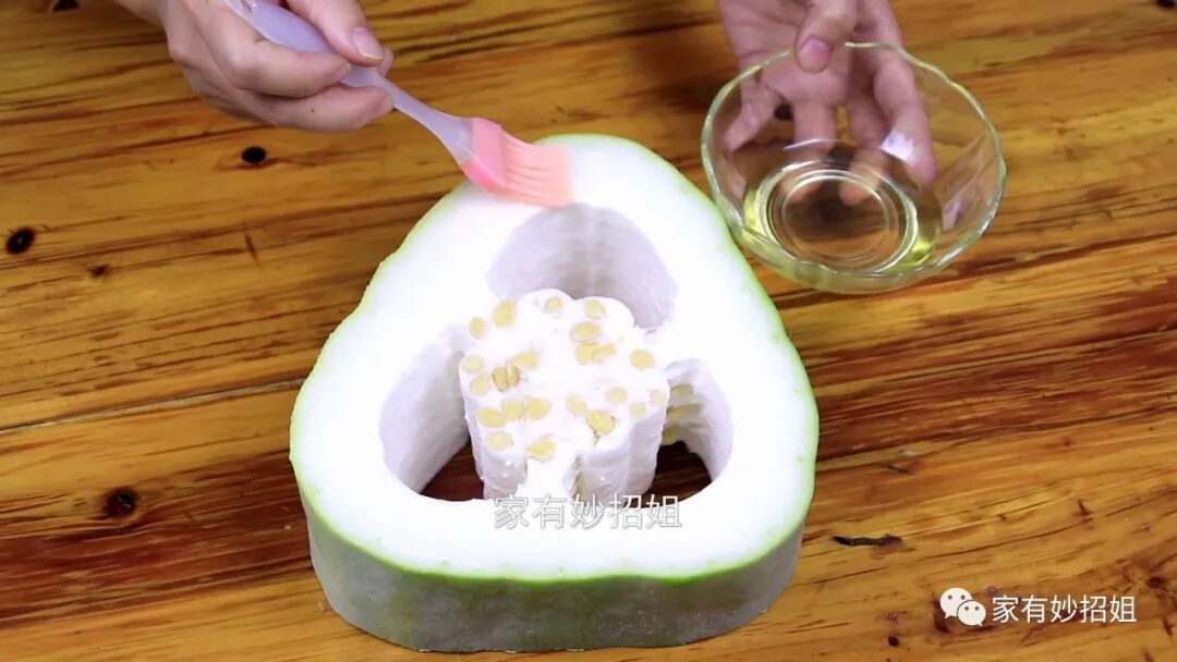要是需要保存的冬瓜不是很多,只有一两顿的量,那么我们也可以选择把它放进冰箱的冷藏室里进行保存。可能很多朋友就只是把冬瓜随手放在了冰箱里,但这样往往保存不上几天,冬瓜也会出现腐烂的情况。其实我们把冬瓜放进冰箱里保存,也是需要先处理一下的。同样的,用纸巾先将冬瓜切口上面的水分吸干,如果有两边切口的话,两面的水分都要吸干。接着我们在碗中准备一点食用油,用刷子蘸取食用油涂抹在冬瓜的切口处。涂抹食用油的作用,是可以起到一个隔绝空气,这样可以避免切口处滋生细菌,冬瓜也就不容易腐烂了。