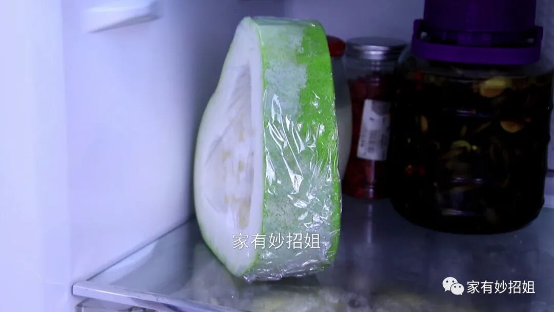 涂抹好,我们再用保鲜膜将冬瓜都包裹起来,最后把它直接放在冰箱的冷藏室里保存就可以了。冰箱的温度比较低,这样冬瓜表面就不容易滋生细菌,也就能保存更长的时间了。如果今天的文章对您有帮助,那就点一个关注,点一个赞,感谢您的支持。