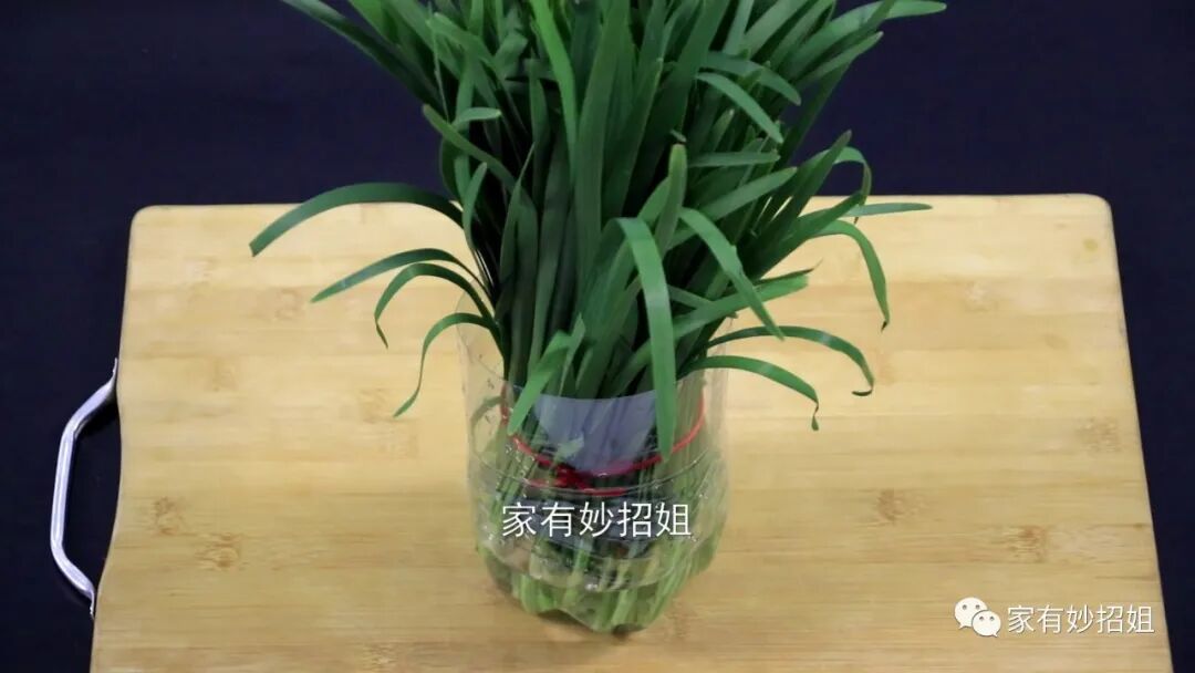 第三个方法:清水保存法。如果我们需要保存的韭菜不是很多,时间也不需要太长的话,那么我们就可以用水培保存。方法也很简单,先将韭菜码齐,然后用绳子把韭菜捆一下。