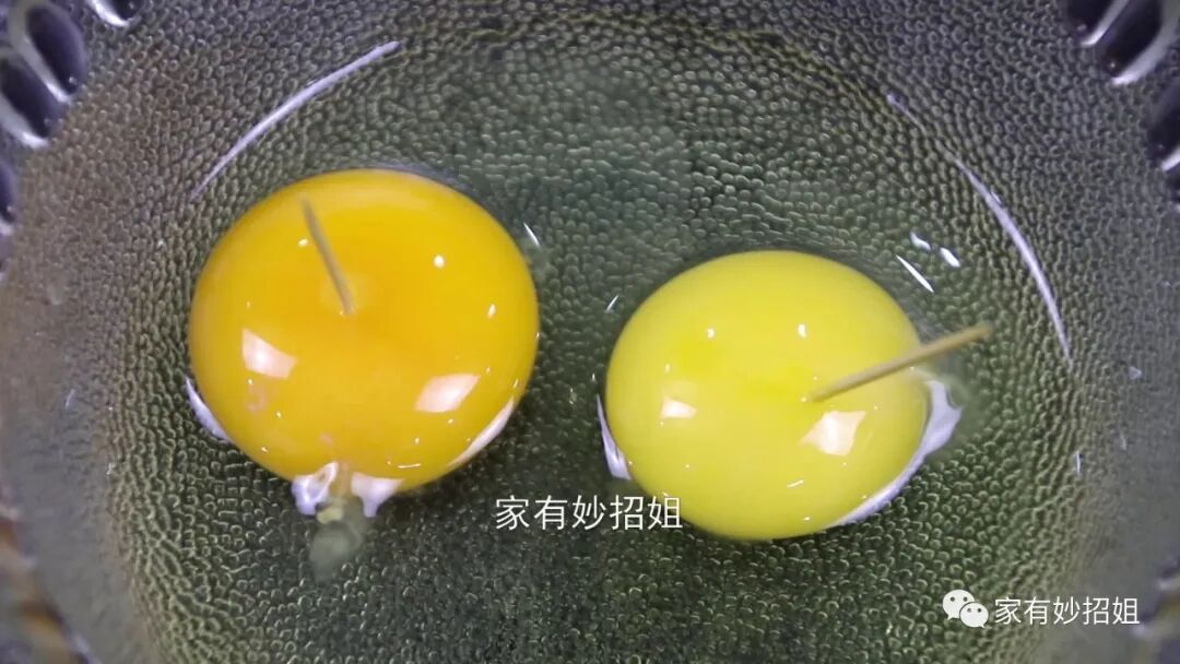 要是鸡蛋已经买回家的话,我们还可以从蛋黄来更好的辨别。我们把鸡蛋敲在碗里就会发现,土鸡蛋的蛋黄颜色会更深,而且也更圆、更紧致。插上一根牙签在蛋黄的中间,这个牙签就会一直竖着,不会倒。而如果是饲养鸡生的蛋,它的蛋黄颜色比较淡,而且整个蛋黄也比较大,要是将牙签插在中间的话,牙签就会慢慢的倾倒,甚至直接就倒掉了。从这个蛋黄我们就能直观的判断它是不是土鸡蛋了。如果今天的文章对您有帮助,那就点一个关注,点一个赞,感谢您的支持。
