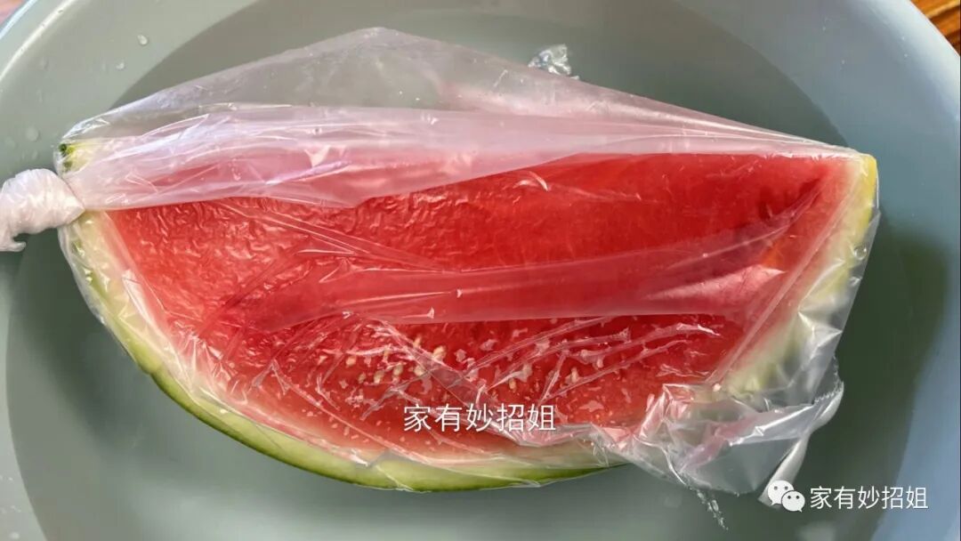 但要是西瓜剩下的不是很多,我们也可以选择用保鲜袋先将西瓜装好,并将袋口打好结。接着,同样的将西瓜放在盆里的清水中,这样也可以保存西瓜一两天都新鲜。我们用这个方法保存的西瓜,吃起来也是冰冰凉凉的,但又没有放在冰箱那么凉,吃起来非常的舒服,也不用担心会对肠胃造成负担。如果今天的文章对您有帮助,那就点一个关注,点一个赞,感谢您的支持。