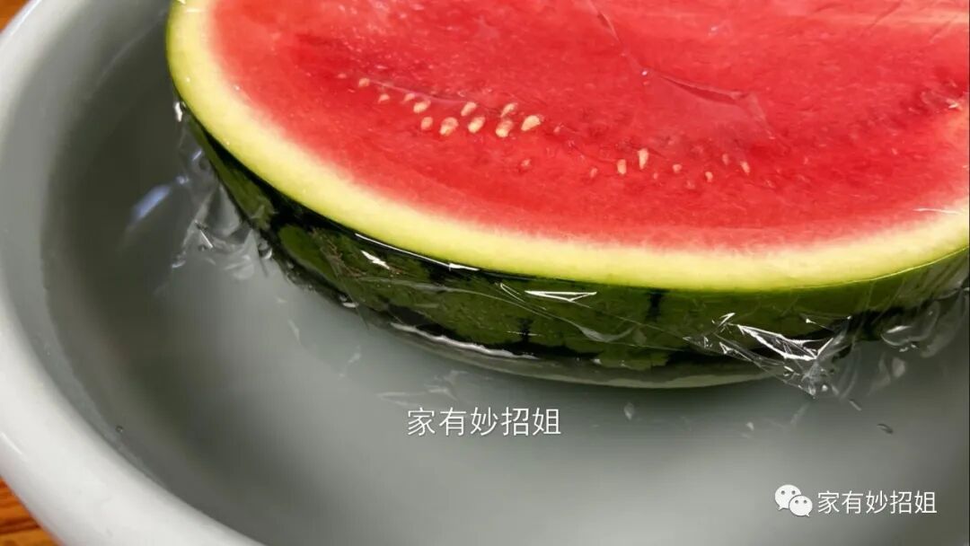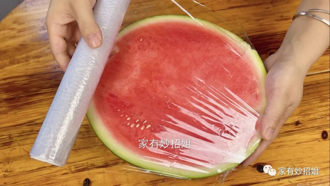 如果我们还剩下大半个西瓜没有吃完的话,可以先用保鲜膜将西瓜的切口处包裹起来,避免西瓜的甜味招引虫子来吸食。