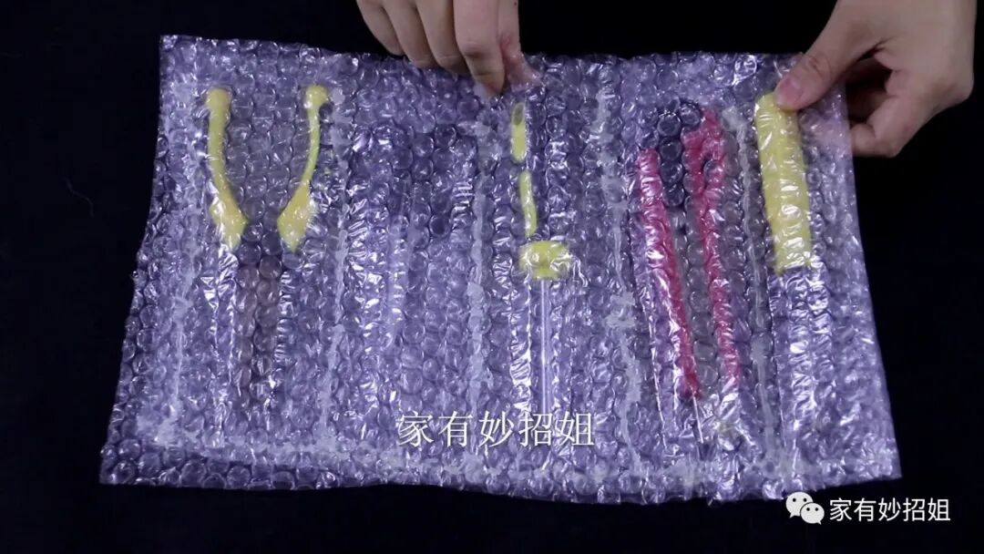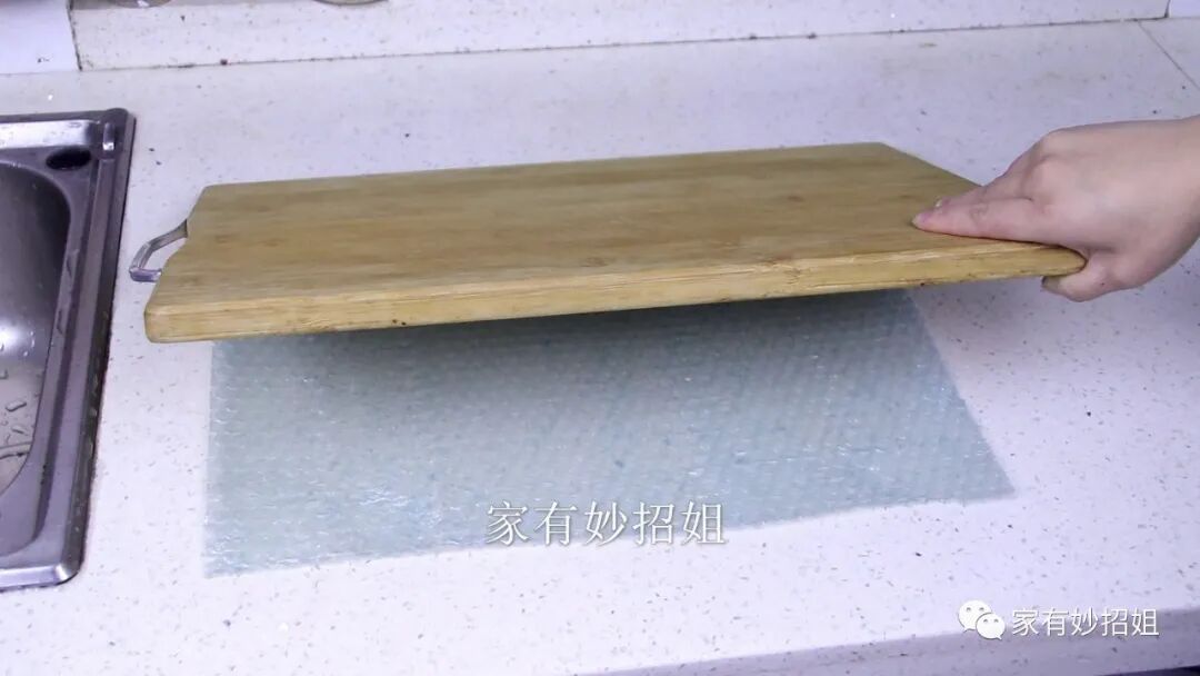 不仅如此,要是我们在砍一些骨头的时候,在菜板下垫了一块气泡垫,还能起到减震的作用,能保护台面的同时,还能减少噪音。