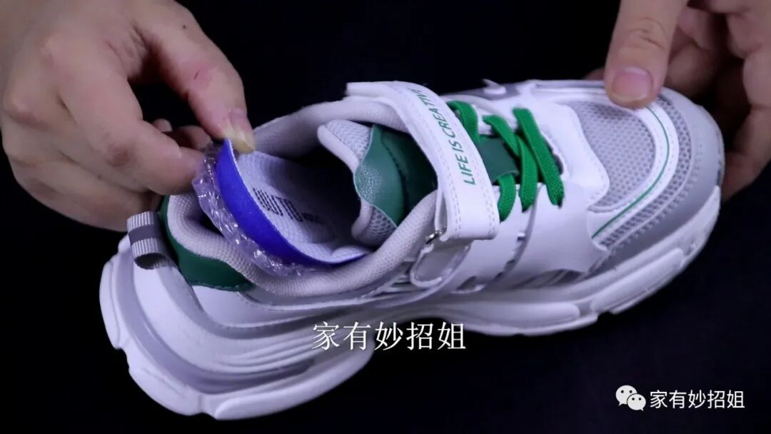 接下来,我们只需要把剪好的气泡鞋垫垫到鞋子的里面,再把鞋垫垫回去。这样我们鞋子再穿的时候就会明显感觉软很多,它就能起到一个防滑、防震的作用。