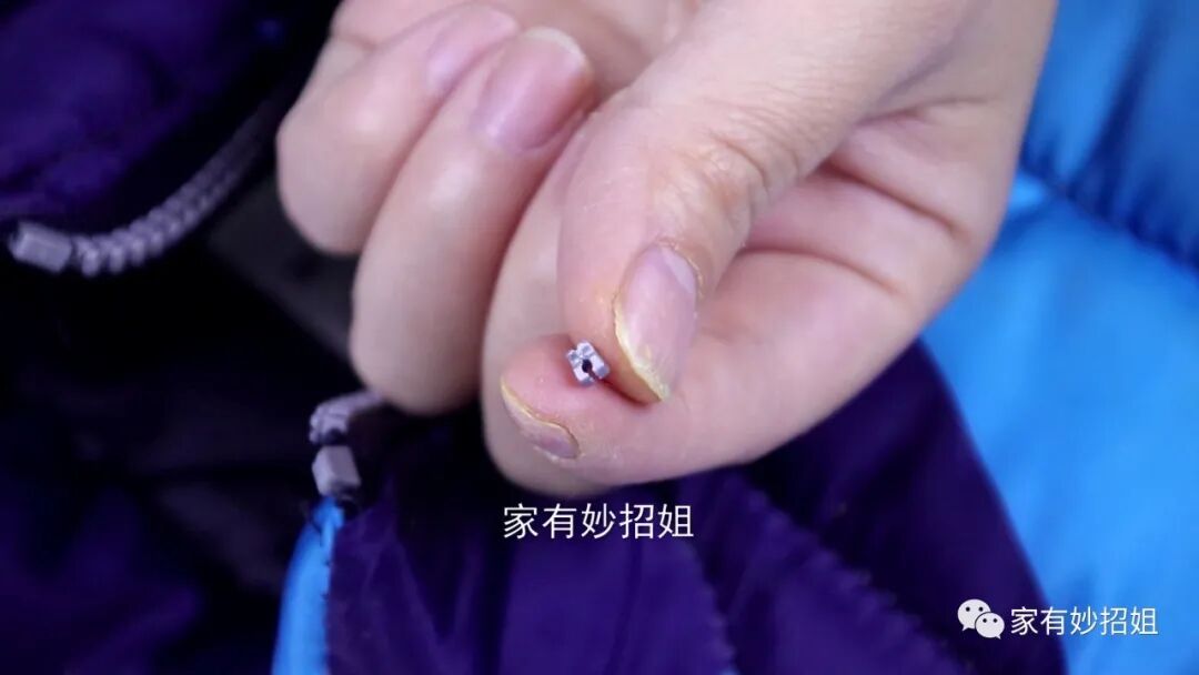 我们的拉链如果掉了一个链齿就会有一个缺口,这个时候我们也不需要将整个拉链都更换。我们先找到拉链的最顶部,然后在最顶部的位置取下一个链齿,顶部的链齿通常我们都是用不到的,就算取掉一个也没有关系。