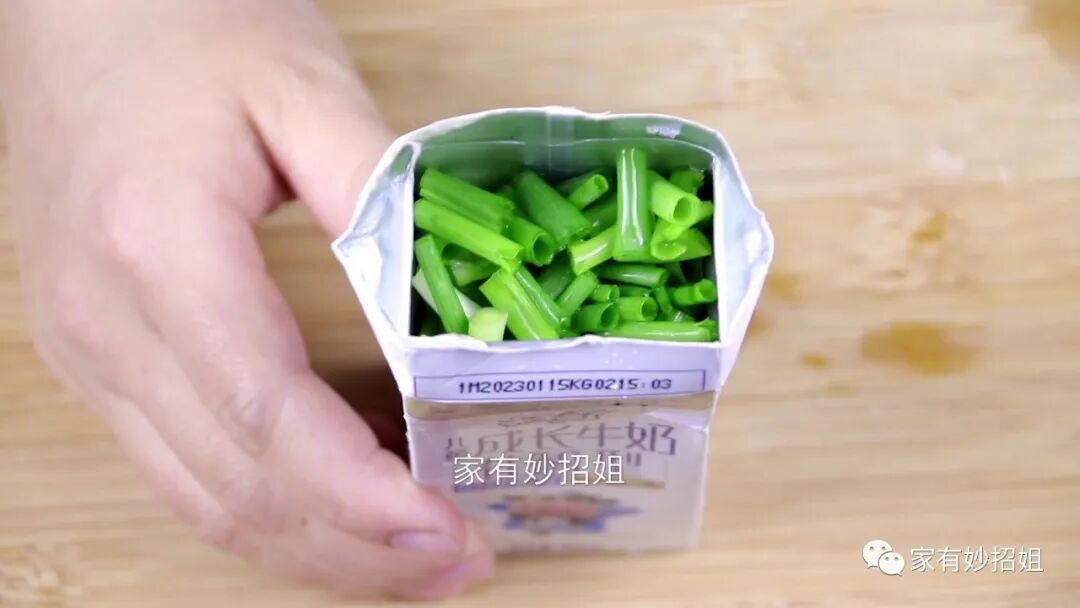 里面的水分晾干后,我们就可以利用它来盛放没有使用完的食材或配料了。牛奶盒的密封性非常好,而且里面还是铝箔的材质,可以直接接触食物。