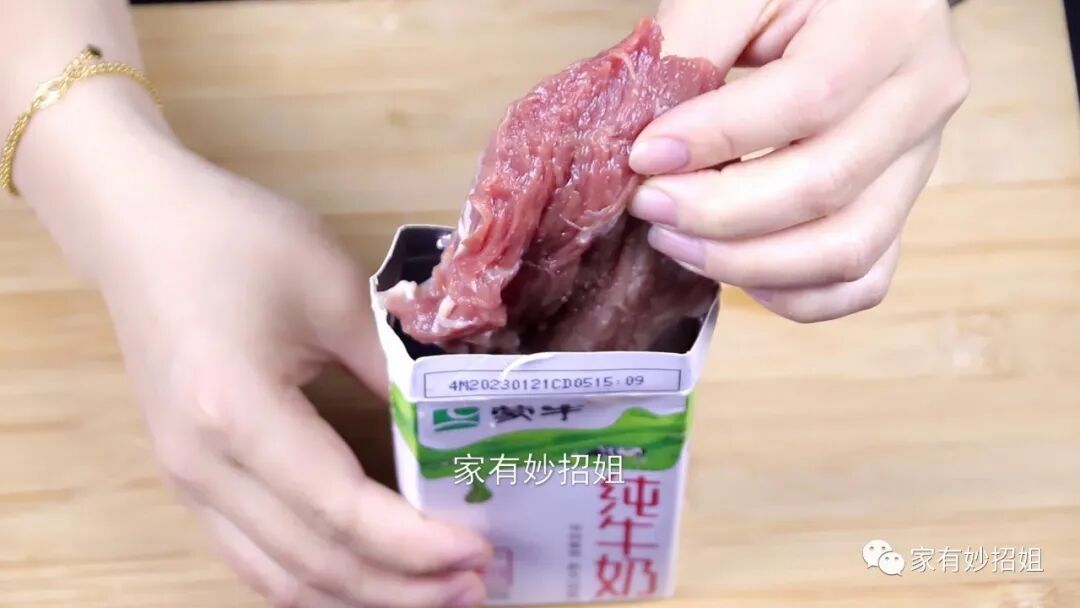 我们把这个纸板清洗干净后,就可以把它直接垫在砧板上。平时如果要处理一些味道比较重的食材,我们就可以直接在展开的牛奶盒上来处理。这样一些腥味、细菌之类的就会残留在牛奶盒上。我们也不用担心会把牛奶盒切破,因为牛奶盒都是比较厚实的,而且牛奶盒内部的铝箔材质也不容易被切破。处理好后,我们直接把这个牛奶盒扔掉,也不会造成浪费。这样就可以很好的避免生冷食物的腥味和细菌留在砧板上,省去了我们清洗菜板的时间。