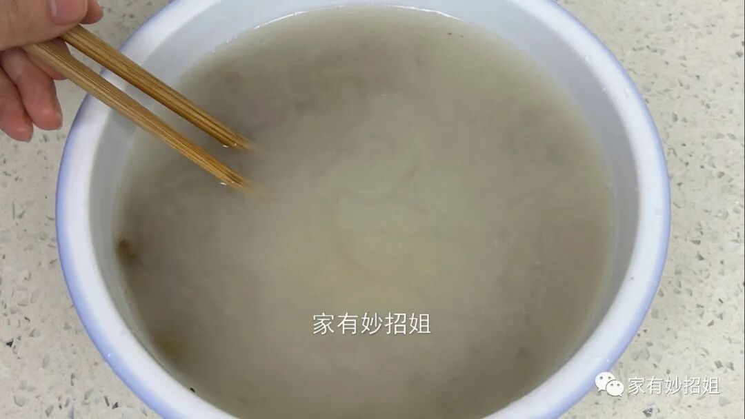 接着,我们再拿一双筷子,顺着一个方向给它搅拌一下。面粉具有很好的吸附作用,可以将葡萄干褶皱里面的一些虫卵、灰尘都吸附在水中。而食盐具有杀菌消毒的作用,可以有助于将葡萄干清洗的更加干净。就这样用筷子搅拌上一到两分钟的样子就可以了。清洗的时间也不要太长,不然葡萄干就会泡软,泡软的葡萄干口感就不好吃了。