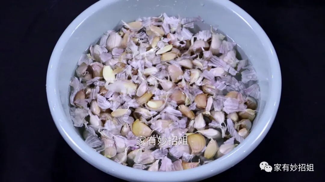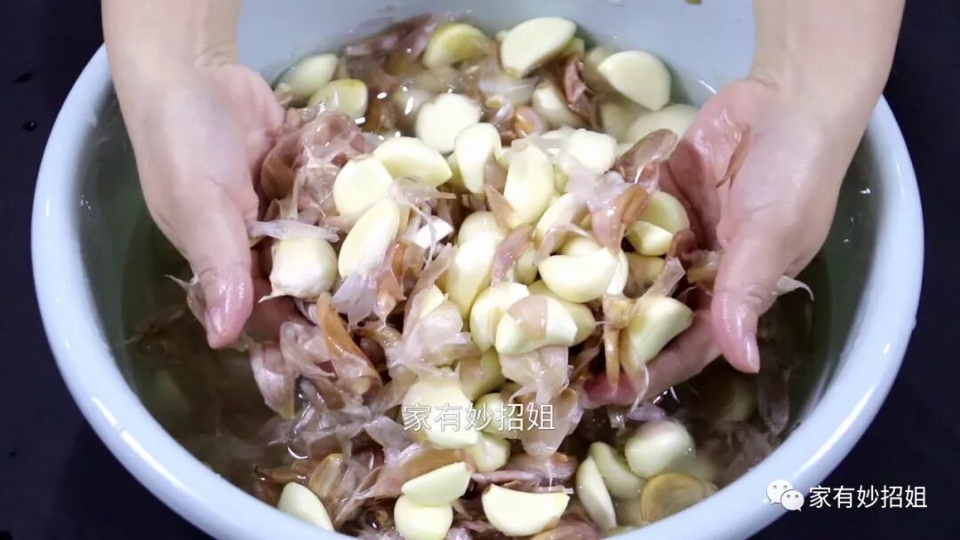 浸泡的时间差不多了,我们可以发现, 蒜皮都被泡软了。接着我们再捞起一把大蒜,双手用力的搓一搓,这样很多大蒜皮就都被搓了下来,就算是一些没有剥出来的大蒜,用手也能很轻松的就剥好。