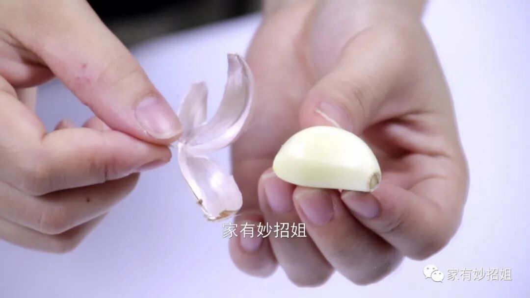 平时剥大蒜,相信很多朋友就是先将大蒜全部掰成一颗颗的,然后再用指甲从大蒜的头部慢慢剥。但这样没剥上几颗大蒜,指甲就会生疼,而且我们的指甲缝里还会残留大蒜,导致手上都是大蒜的辛辣味。其实剥大蒜根本不用这么麻烦,我们只需要先拿起一颗大蒜,然后用大拇指和食指捏住大蒜的头尾,接着用力往中间挤压,这样大蒜皮就裂开了。