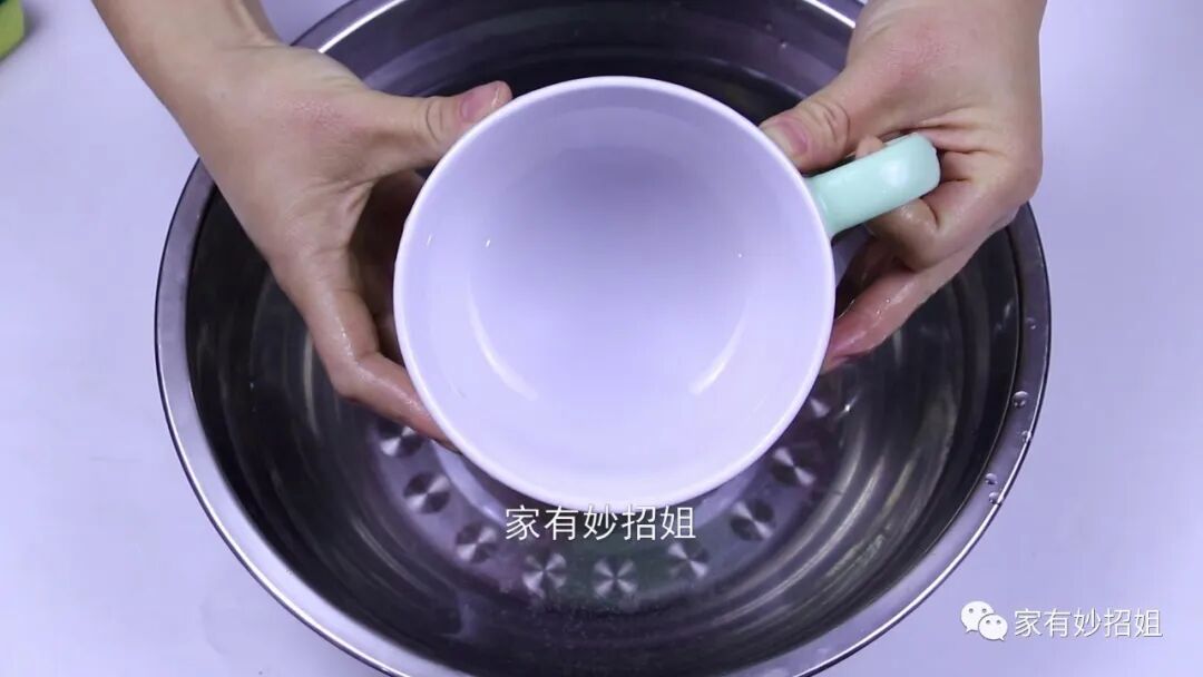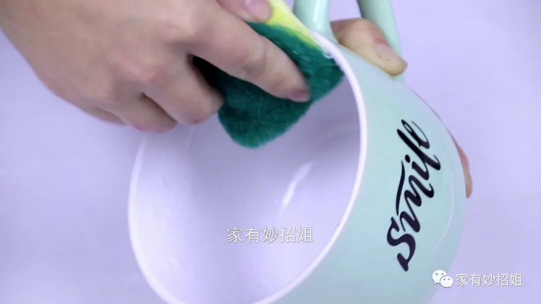 遇到这样的问题,我们只需挤点牙膏在杯子里,然后再用牙刷蘸取牙膏将杯子刷一刷。
