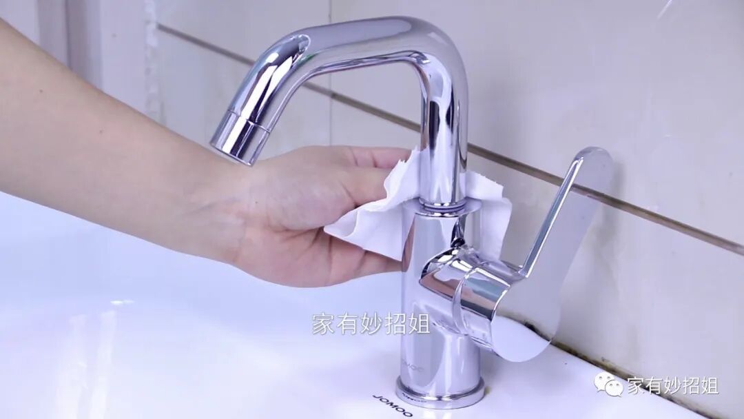 将水龙头都擦拭过后,再用清水冲洗干净。这个时候我们就会发现,水龙头就变得和新的一样,看上去非常的光亮,上面一点水印都没有。