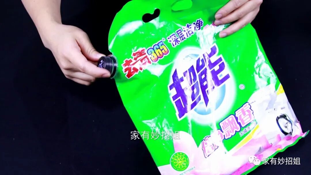我们的洗衣粉袋口打开后,里面的洗衣粉很容易会受潮结块,而且每次倒洗衣粉也不能很好地控制它的量。那么这个时候,我们可以把塑料瓶瓶口的位置给它切割下来。然后再把它塞到洗衣粉的开口里面,接着再用热熔胶沿着袋口和塑料瓶打一圈,等热熔胶冷却定型后,洗衣粉的袋口就密封好了,这样就不怕里面的洗衣粉再受潮结块了。而且要使用的时候也很方便,我们将瓶盖拧开就可以倒出来,还能很好地控制量。