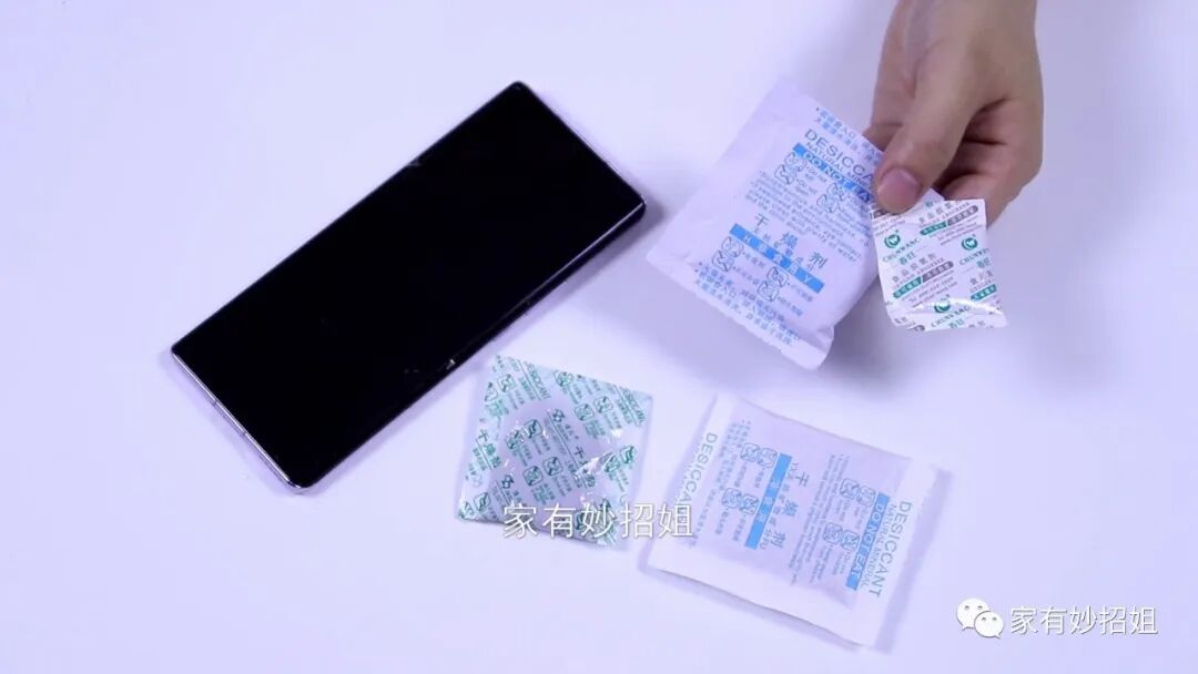 妙用三:防止手机受潮。平时我们把手机放在桌面上的时候,一不小心洒上了水。或者是洗澡的时候,把手机带进了浴室,让手机受了潮。手机一旦受潮,它的使用寿命就会变短。这个时候我们就可以拿上一个密封袋,把手机放进密封袋中,然后在袋子里放上一包干燥剂。这样让它静置一晚,我们手机里面的潮气就被吸收掉了。