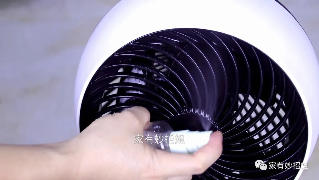 在清洁之前我们要先将插头拔掉,接着用喷壶对准风扇的叶片喷一喷,将溶液均匀的喷洒在扇叶上面。不过我们要注意,不要喷洒在了电机上,否则还可能会造成电机损坏。