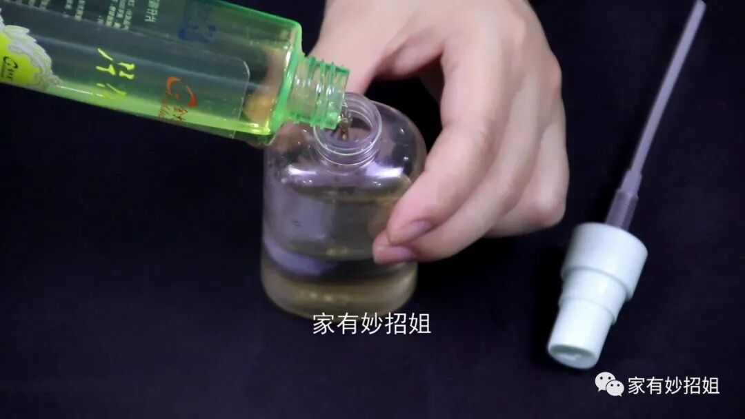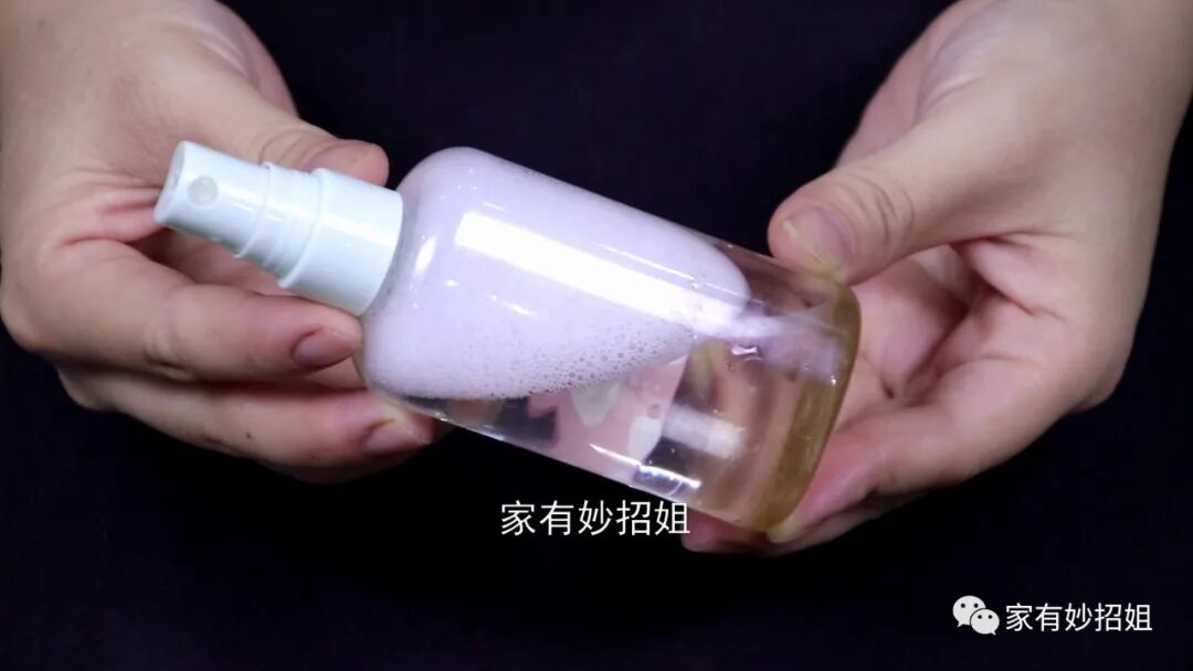 其实想要把风扇清洁干净,方法也特别简单,我们先来调制一个清洁的溶液。准备一个喷壶,然后往喷壶里面倒入一点白醋,白醋相信大家都不陌生,它是我们厨房里的一种调味料,但其实白醋还具有软化污渍的作用,可以有助于将附着在风扇上的污渍软化。接着我们再挤入一点洗洁精,洗洁精的去污能力非常强。接下来,我们还需要往里面倒入一些花露水,它的作用可以增香,而且还能避免蚊虫靠近。