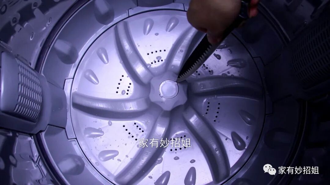 接下来,我们只需要把底座拿出来,用流动水边冲边刷洗干净就可以了。而洗衣机底座的部分,我们可以拿块毛巾慢慢擦拭,直到把它完全擦拭干净。