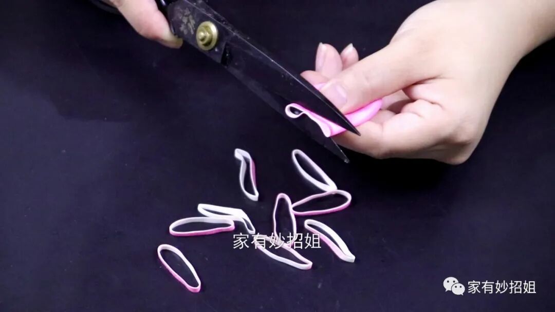橡胶手指套不仅可以用来密封,我们还可以把它剪成一小圈一小圈的,剪好就变成了一个个橡皮筋。如果我们找不到扎头发的皮筋时,就可以用它来代替,它的弹性也是非常好的。