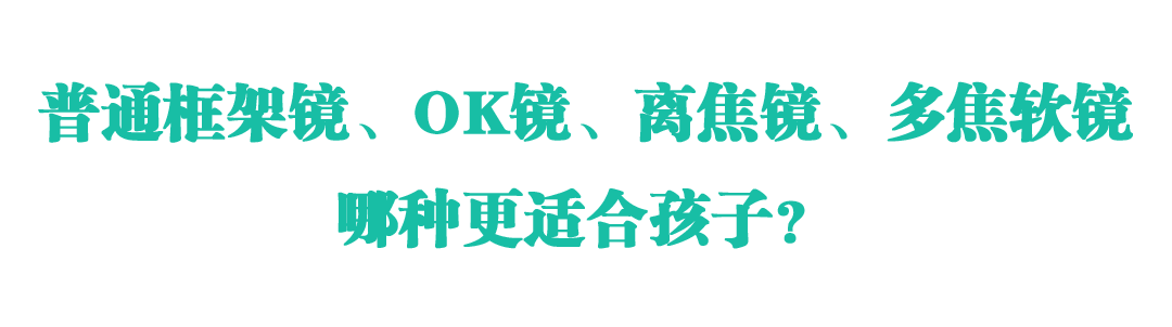 以前孩子近视了,一副框架眼镜就可以解决了。但如今,可供选择的近视眼镜很多:普通框架眼镜、角膜塑形镜(俗称“OK镜”)、离焦控制型框架眼镜(以下简称“离焦框镜”)、多焦点软性角膜接触镜(以下简称“多焦软镜”)……
