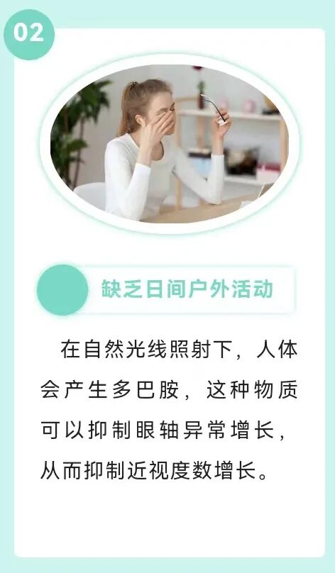 近视眼中,97.8%都是单纯性近视眼,其产生的主要危险因素有三点:一是高强度、近距离用眼;二是缺乏日间户外活动;三是不良的视觉环境。