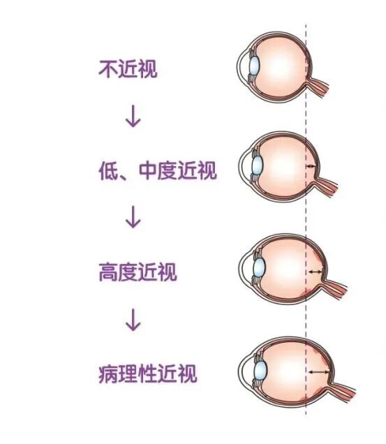 近视大多是由眼轴变长导致的而眼轴变长是一个不可逆的过程所以近视一旦产生无法逆转就好比一个人的个子长高后无法再变矮一样它还会随着孩子的年龄增长、身体发育每年生理增长,到青春期为止